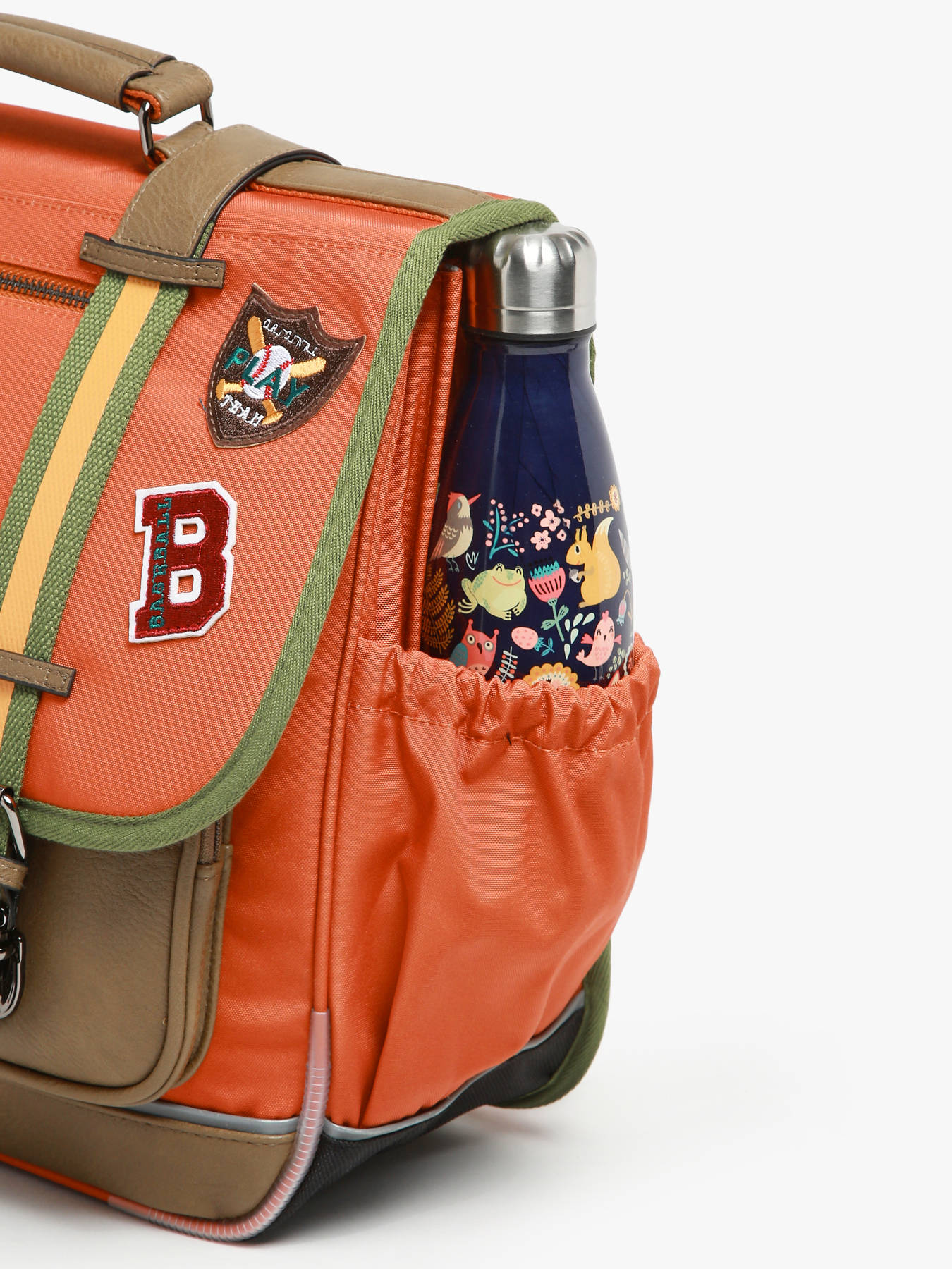 41 cm - 24 liter - 1.33 kg ~ Deze schooltas uit de Vintage collectie van het merk Caméléon heeft een breedte van 41 cm. Ideaal voor vanaf het 4de leerjaar! Dit model heeft een duidelijke vintage look, dankzij twee voorvakjes en de riempjes met gespen. De schooltas beschikt over drie ruime compartimenten, die schriften (24x32 cm), mappen en schoolboeken van A4 formaat kunnen bevatten. Onder de overslagflap bevindt zich ook een uniek opbergvakje, voorzien van een gratis liniaal. De twee kleine ritsvakjes vooraan zijn perfect om een snack of andere kleine spulletjes in te stoppen. Dit model beschikt ook over een naamlabel aan de achterzijde, en kan makkelijk gesloten worden dankzij een dubbel kliksysteem. Voor optimaal comfort zijn de rugzijde en schouderbanden extra gewatteerd. Dankzij enkele reflectoren kan uw kind zich ook veilig in het verkeer begeven. Vintage op z'n mooist!