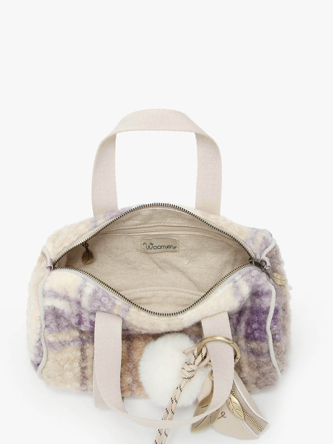 De cross body tas WOOMEN uit de ALYSSUM-lijn, in mini bowlingtas-formaat, kan crossbody gedragen worden of in de hand dankzij de verstelbare en afneembare schouderriem met een subtiel Woomen-logo. Gemaakt van polyester met een voering van katoen en linnen, heeft hij een ritssluiting, een interieur met een open vak, een ritsvak één hoofdvak, afgewerkt met een tassenhanger die een originele en elegante toets geeft.