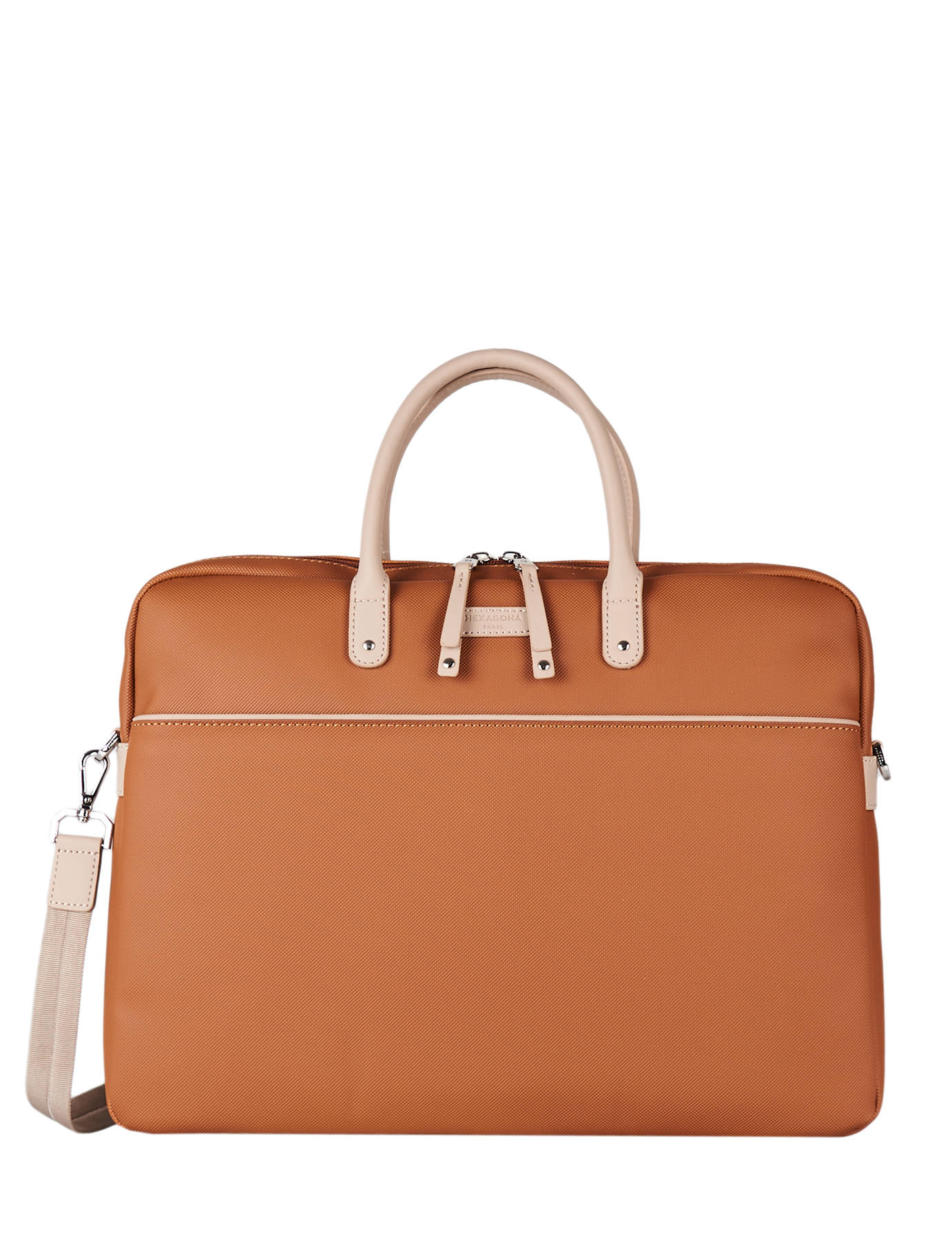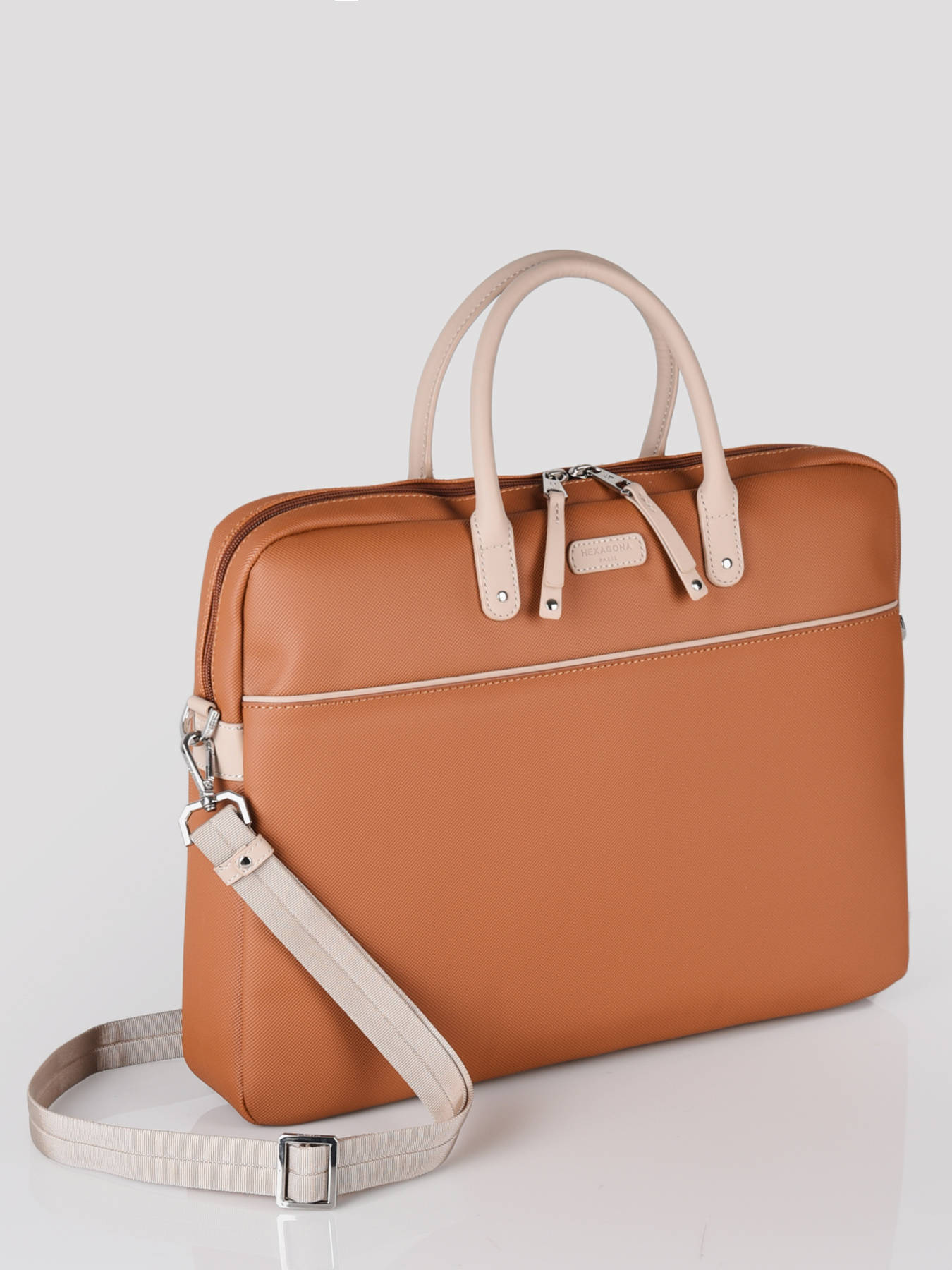 Documententas uit de Serena business line van het merk Hexagona, gemaakt van waterdicht, getextureerd canvas. Deze aktetas kan beschikken over uw A4-documenten en een 15"" laptop, dankzij het verstevigde vak. Het interieur beschikt over twee pennenhouders en twee, kleinere steekvakjes. U kunt de tas zowel ind e hand als gekruist dragen, dankzij het afneembaar schouderriempje.
