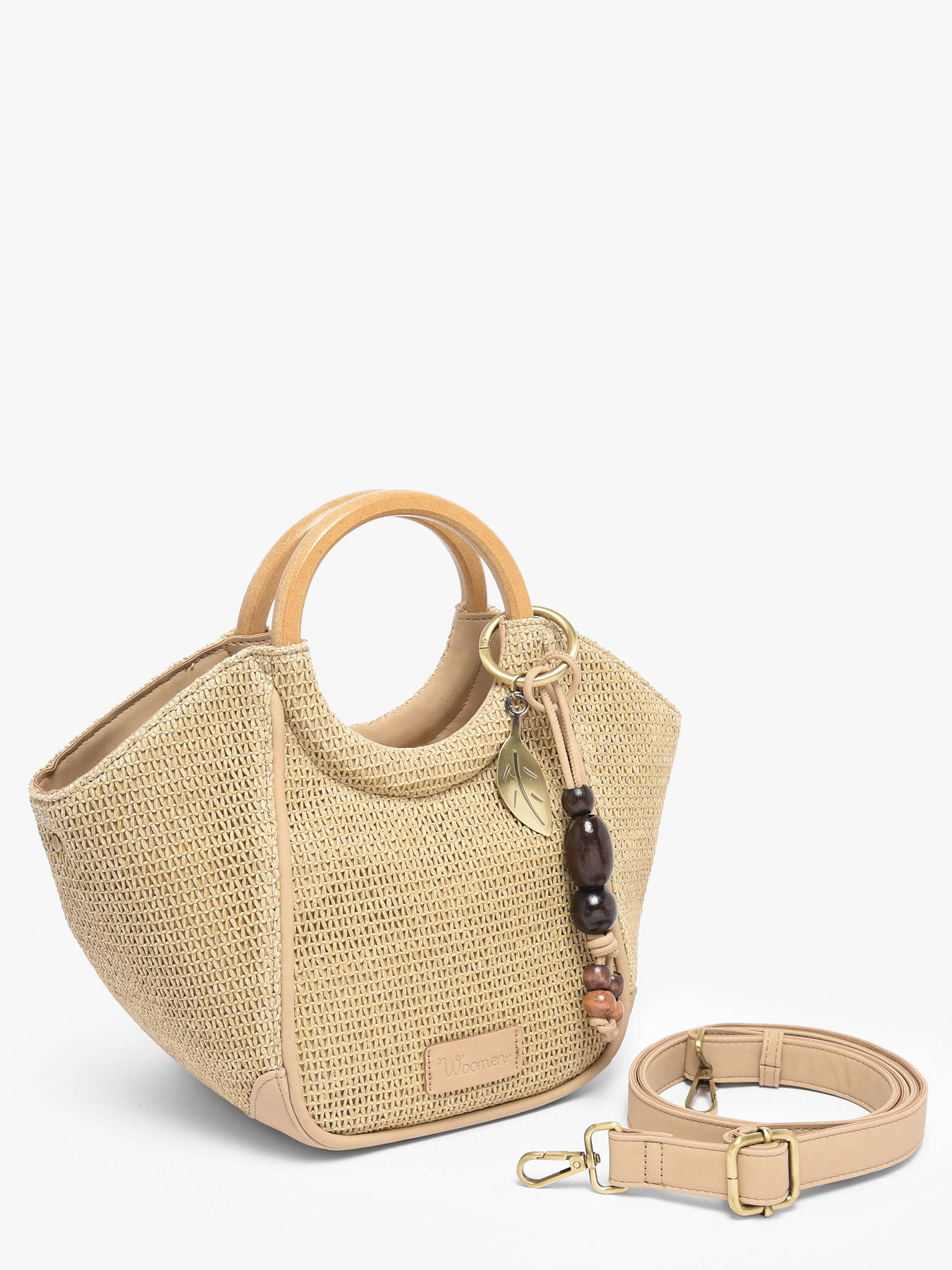 De handtas WOOMEN uit de lijn Crocus Estival combineert elegantie, lichtheid en zomerse stijl. Het hoofdmateriaal van polyethyleen met polyurethaan, in combinatie met de voering van katoen en linnen, zorgt voor stevigheid en comfort. Deze bimateriële tas is voorzien van een ritssluiting, een afneembare polyurethaan band en een houten handvat, waardoor hij aan de hand of als cross body tas gedragen kan worden, afhankelijk van je voorkeur. Binnenin zorgen een ritsvak en een steekvak voor eenvoudig organiseren van je essentials. De bijbehorende parelbag charm geeft een verfijnde afwerking en een zomers vleugje, waardoor deze tas een praktisch en elegant accessoire is om al je zomerse outfits compleet te maken.