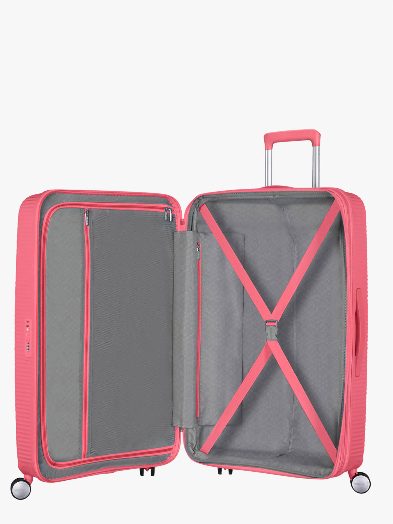 Harde reiskoffer uit de Soundbox-lijn van American Tourister. De koffer van Cristiano Ronaldo. Ideaal formaat voor een reis van een tweetal weken en ook nog uitbreidbaar voor een totaalvolume van 110L. Binnenin is de koffer opgesplitst in twee compartimenten met riemen aan elke kant. Heel stevig en licht, vervaardigd van polypropyleen. Geniet van een maximum aan mobiliteit en comfort dankzij de vier dubbele wieltjes, de twee draaggrepen en het regelbare trolleysysteem. Veilig door het cijferslot systeem. Ook uitgerust met een TSA systeem conform de Amerikaanse wetgeving.