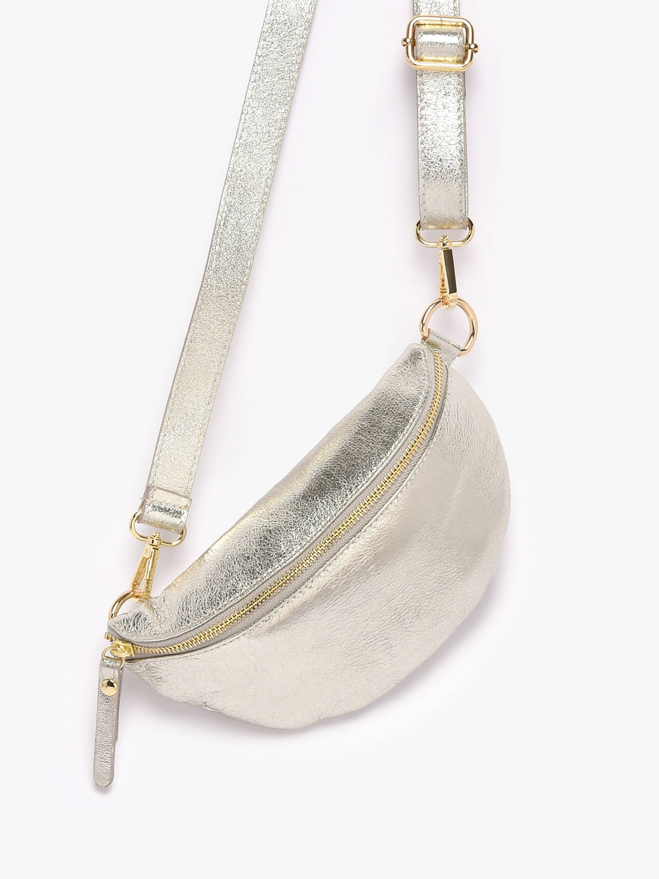 Dit heuptasje uit de Nine collectie van Milano bezorgt jouw outfit een trendy accent! Dit damesaccessoire is gemaakt van soepel rundsleer met een metallic craquelé finish en goudkleurige hardware. Het heuptasje sluit met rits, en beschikt over een compact interieur. Perfect om al jouw essentiële spulletjes veilig in op te bergen. De lederen riem is verstelbaar, waardoor u deze comfortabel over de schouder of rond de heupen kunt dragen.