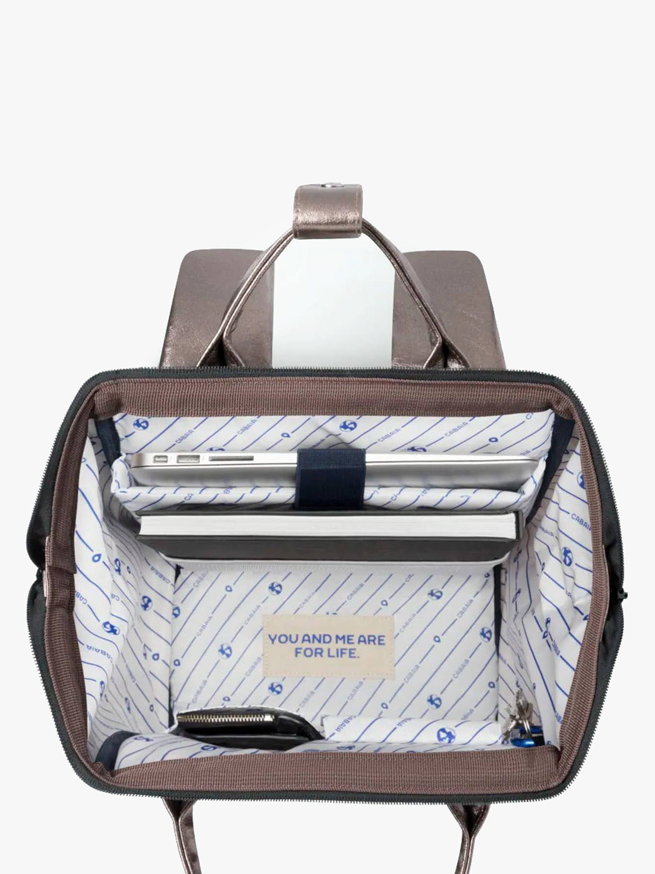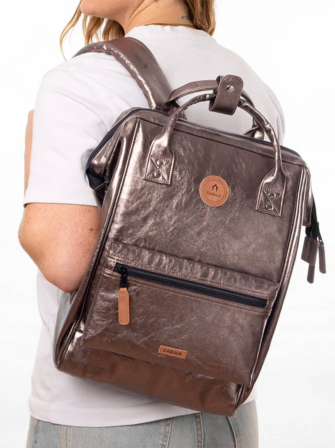 Ga voor vegan met deze Cabaia rugzak! Deze rugzak uit de ""Around the World"" collectie is je ideale metgezel, zowel voor school als voor op reis. Een leuk extraatje is het afneembare voorvakje, zo kan je de rugzak aan je outfit of stemming aanpassen en personaliseren. Deze rugzak is gemaakt van ultrabestendig nylon en heeft een groothoekopening die toegang biedt tot een ruim hoofdcompartiment voor een 13"" laptop of tablet. U kunt er ook schriften en mappen van A4-formaat in opbergen. Deze rugzak is ook perfect voor het meenemen van kleding tijdens een weekendje weg, met ruimte voor 2 jeans, 1 trui, 2 T-shirt, ondergoed, een toilettas, een computer en een tablet. Voor maximaal comfort is de rugzijde verstevigd en zijn de schouderbanden gewatteerd. Aan de achterkant van de tas is een extra ritsvakje voor kleine spulletjes te vinden. De verwisselbare voorvakjes worden samen met de rugzak geleverd.
