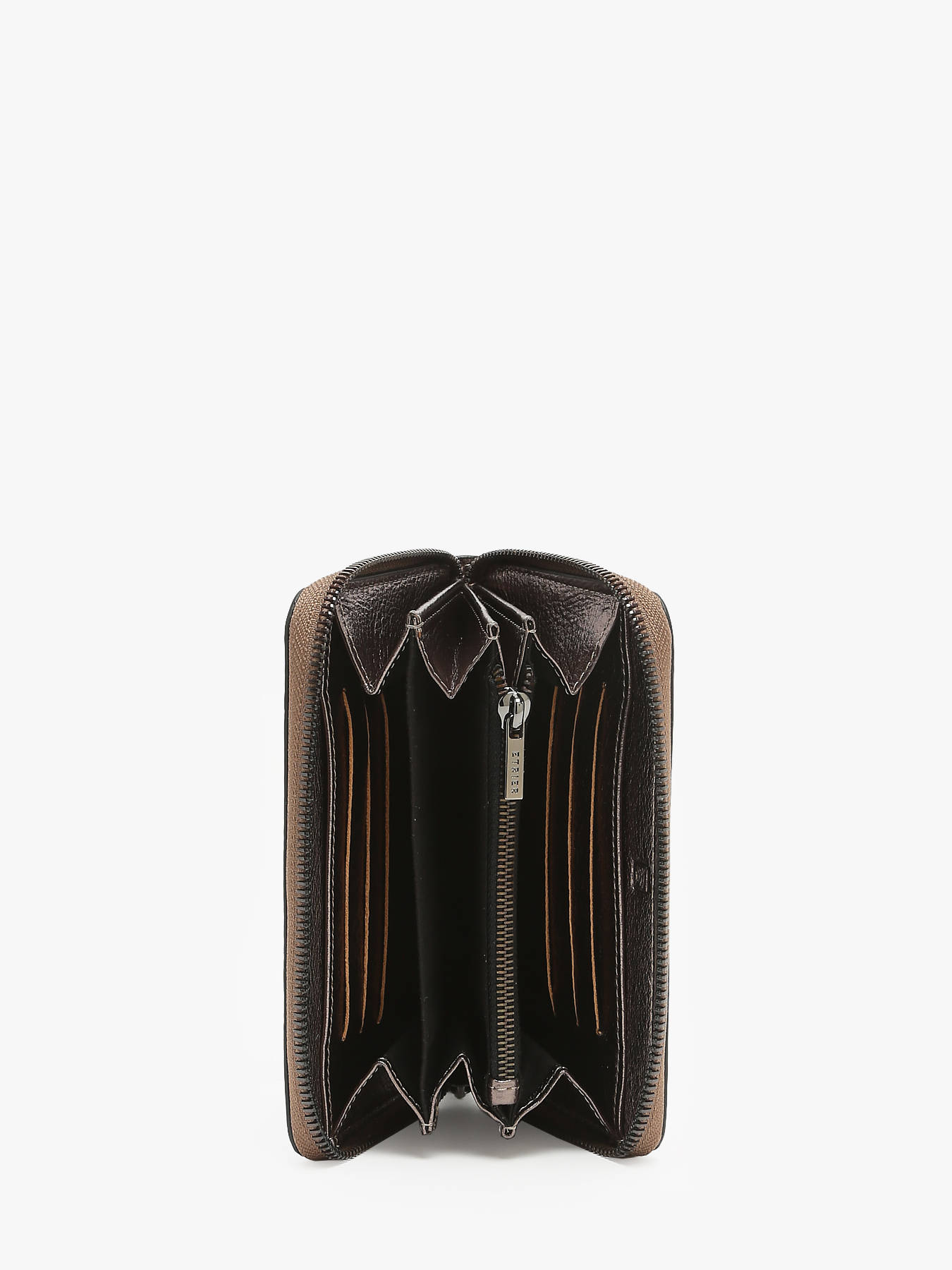 De ETRIER portefeuille uit de EMERAUDE-lijn, gemaakt van soepel en iriserend leer, voegt een kleurrijke en verfijnde toets toe aan je dagelijkse routine. Een perfecte combinatie van praktisch en elegant, voorzien van twee schouderriembevestigingen aan de achterkant. Stop hem gemakkelijk in je handtas of draag hem over de schouder met een ketting (apart verkocht, referentie: 709-EACC070L) voor extra comfort.