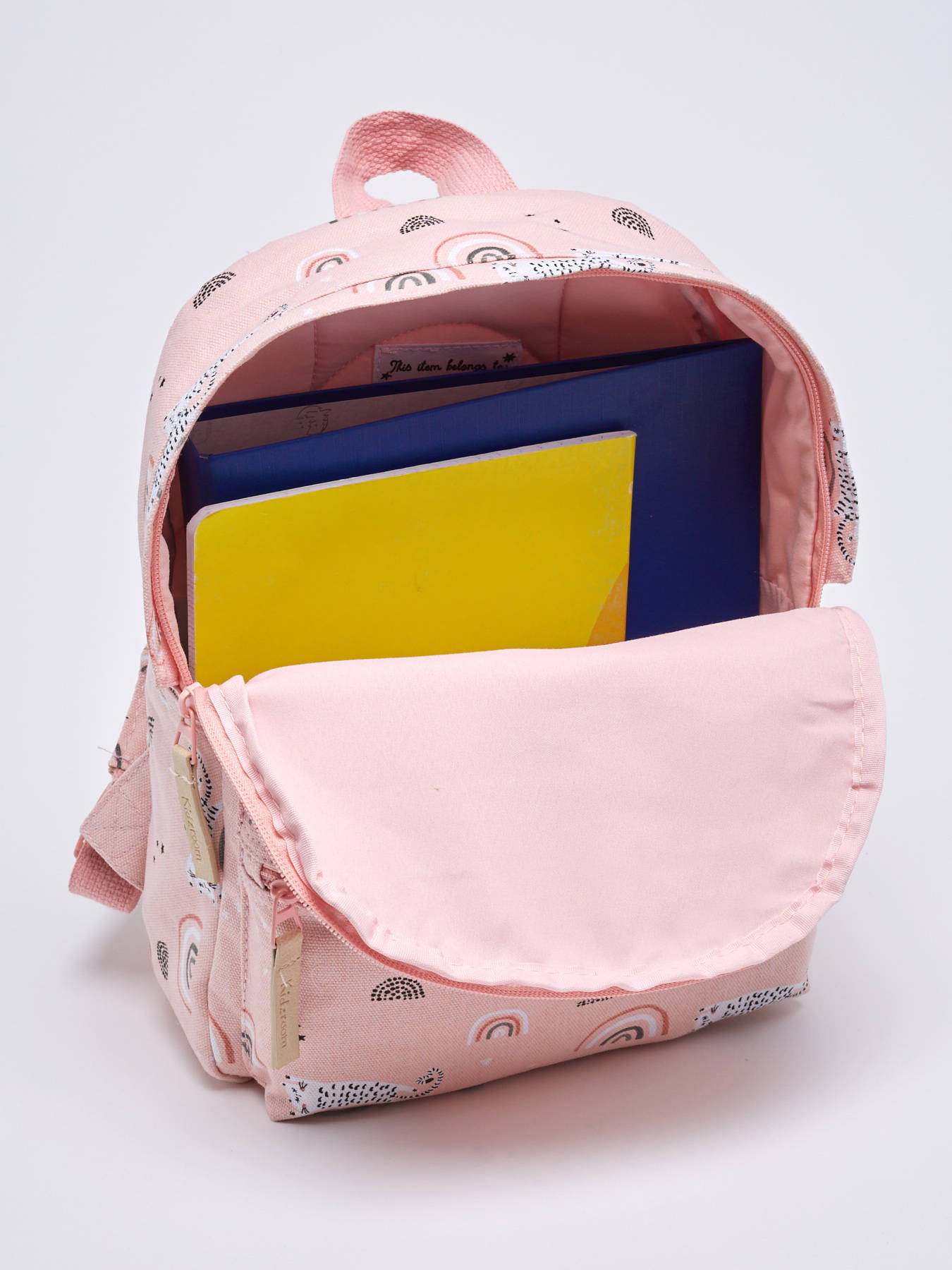 Lieve rugzakjes voor de eerste ontdekkingen van je kind. De Kidzroom rugzak uit de Mini collectie is perfect voor kleine meisjes om mee te nemen naar school, een dagje uit of tijdens een logeerpartijtje bij opa en oma. Deze Kidzroom rugzak is roze en heeft een lieve print met poezen en regenbogen. De tas heeft een ruim hoofdvak waar je schoolspullen, een broodtrommel en een drinkbeker in kwijt kunt. De schouderbanden zijn in lengte verstelbaar en de lus maakt het makkelijk om de tas op te hangen.